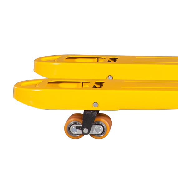 Trotzdem ist er kompakt und lediglich 32 mm länger als ein manueller 800 mm Hubwagen.