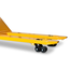 Kugelgelagerte Lenkrollen aus Gummi und Lastrollen aus Polyurethan (PU) sorgen bei diesem Hubwagen für stabile Fahreigenschaften und hohe Laufruhe. Das sichere Handling schwerer Lasten wird durch die Lastrollen in Tandemausführung erleichtert. Mit dem Handhebel an der Deichsel lassen sich auch schwer beladene Paletten stufenlos und dosiert absenken.