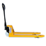 Der unkomplizierte und universell anwendbare Gabelhubwagen ist intuitiv zu bedienen. Die Lenkdeichsel dient zugleich als Handpumpe für die Hubhydraulik, mit der die Gabeln angehoben werden. Über den Bedienhebel am Deichselgriff können die Gabeln wieder abgesenkt werden. Damit finden sich auch Einsteiger schnell in die Arbeit mit dem Gabelhubwagen ein.