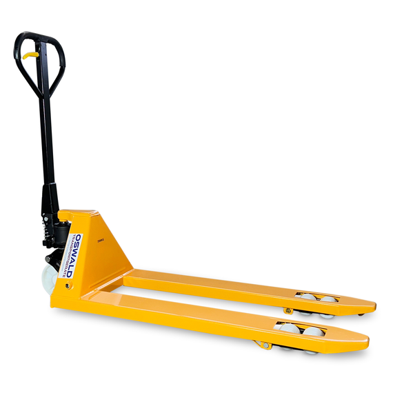 Mit dem klassischen Hubwagen heben, senken und verfahren Sie schwer beladene Paletten schnell, sicher und effizient. Er ist für die tägliche Beanspruchung in Industrie, Handel und Logistik ausgelegt und in puncto Preis-/Leistungsverhältnis kaum zu schlagen. Die jeweils um 210° nach rechts und links drehbare Deichsel macht diesen Hubwagen sehr wendig und alltagstauglich für viele professionelle Anwendungen rund ums Lager. Der robuste Gabelhubwagen ist dank stabiler Konstruktion und hoher Verarbeitungsqualität äußerst wartungsarm im Betrieb und hat auch im Dauereinsatz eine lange Lebensdauer.