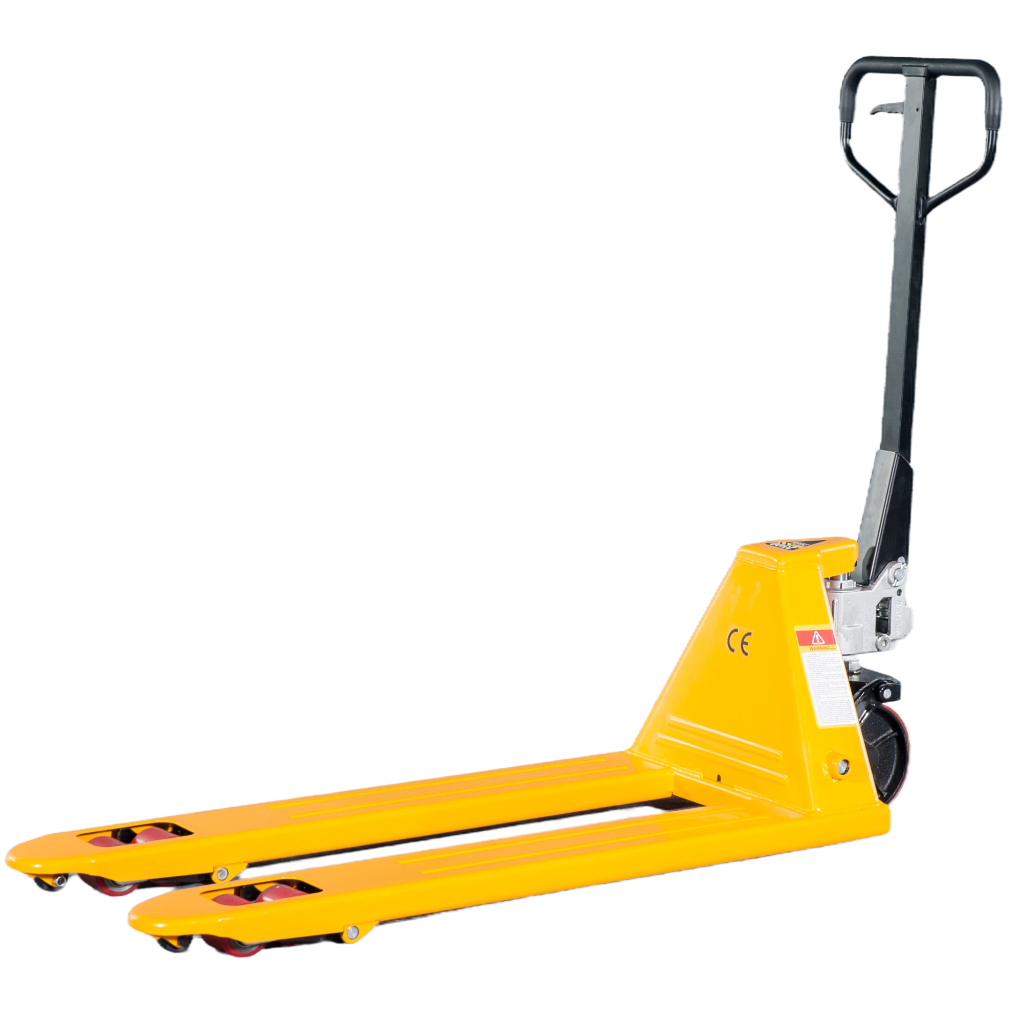 Dieser Handhubwagen ist zudem mit speziell entwickelten Schubstangen ausgestattet, die eine feine und eigenhändige Justierung der Gabeln ermöglichen.