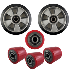 Hubwagen Räder/Rollen Komplettsatz für Ihren Hubwagen Dieser Satz besteht aus 2 Gummirädern und 4 Polyurethanrollen. 2 Gummiräder: Vollgummiräder zeichnen sich durch eine hohe Elastizität aus und eignen sich daher auch für unebenere Böden. Die Räder federn durch ihre...