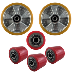 Hubwagen Räder/Rollen Komplettsatz für Ihren Hubwagen Dieser Satz besteht aus 2 Polyurethan Lenkrädern und 4 Polyurethan Lastrollen. 2 Polyurethan Lenkräder: Polyurethan-Räder zeichnen sich durch eine hohe Elastizität aus und eignen sich daher auch für unebenere Böden. Die Räder...